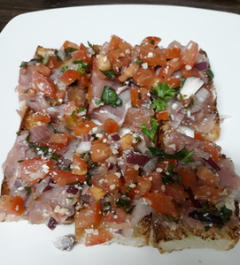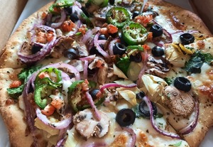Our 10 inch personal pizza are prepared in traditional Italian style with a blend of mozzarella and parmesan cheeses, then topped with diced tomatoes in place of marinara and baked in our brick oven.