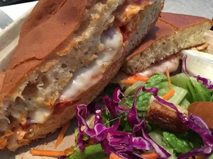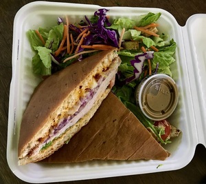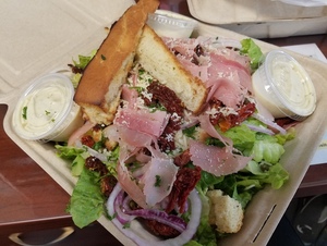 All sandwiches include a large side salad, pasta salad or soup. For Caesar salad - add $2.50. *Zucchini can be substituted for meat on any sandwich*