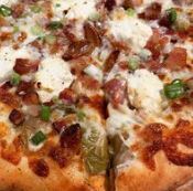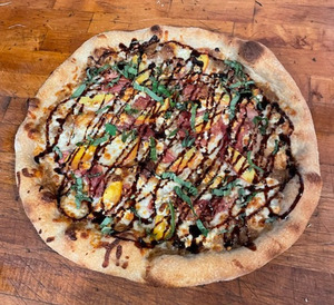 All pizzas are made from 13 oz of hand stretched dough and are approximately 14 inches in diameter. Our traditional pizza dough is made fresh from scratch daily and contains all organic and non-gmo flours, local craft olive oil, sea salt and yeast.